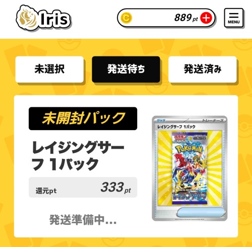 IRIS オリパは発送から3~10営業日で到着予定となっています。