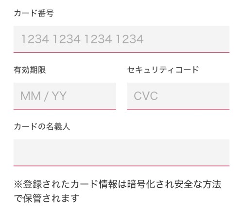 クレジットカードの支払いの際には、カード番号・有効期限・セキュリティコード・名義人を入力しますが、スマホのカメラからカード情報のスキャンができるので入力も簡単です。